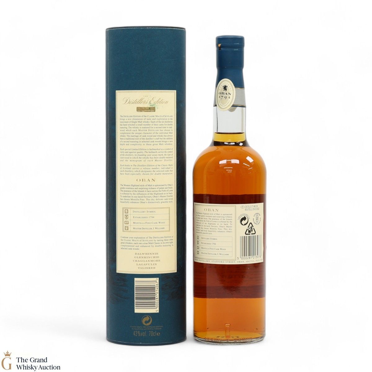The first release of the Oban entry in Diageo's Distillers Edition range. It is a special limited edition release, distilled in 1980 and finished in Montilla casks to spice up the distillery's signature maritime character.