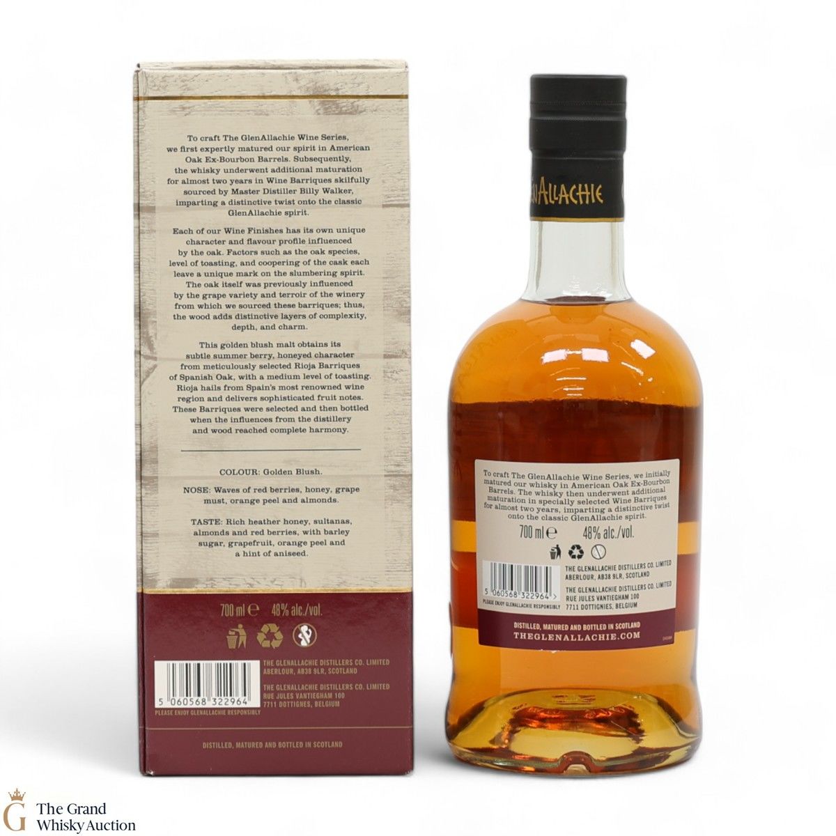 Distilled at the GlenAllachie Distillery, this single malt was matured for a total of 13 years, first maturing in an American Oak ex-bourbon barrel, then finished in a Rioja wine cask. Bottled at 48% ABV, this single malt is part of the limited edition GlenAllachie Wine Series.