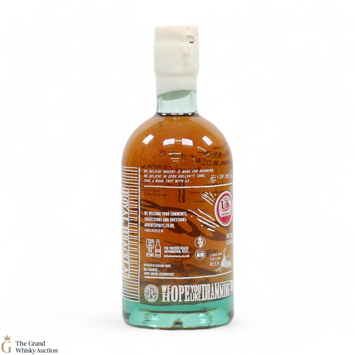 Due to the various ages of bottles and their seals, the condition of liquid is at the buyer's discretion and no claim can be lodged against failure/leakage in transit. Loss and breakage cover is available at 3% of the hammer price as standard. If the lot is not insured, no claim can be lodged against the courier or The Grand Whisky Auction for breakage or loss in transit.