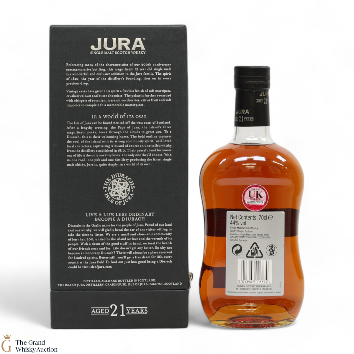 Due to the various ages of bottles and their seals, the condition of liquid is at the buyer's discretion and no claim can be lodged against failure/leakage in transit. Loss and breakage cover is available at 3% of the hammer price as standard. If the lot is not insured, no claim can be lodged against the courier or The Grand Whisky Auction for breakage or loss in transit.