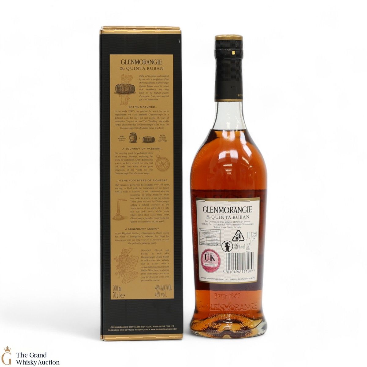 Glenmorangie Quinta Ruban is matured for 12 years in bourbon casks with a finishing period in the finest Ruby Port casks from the "Quintas" or wine estates of Portugal. Ruban is Gaelic for Ruby.