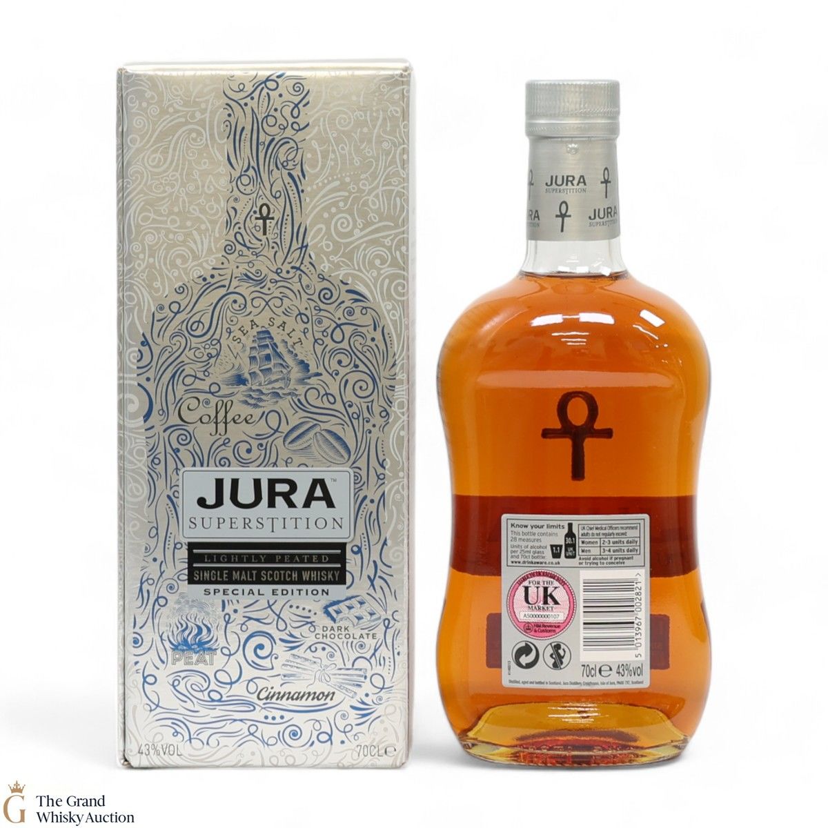 A lightly peated single malt made up of different ages. It is named after the fact that Islanders were very superstitious in the past, this is a nod to them, and to the Island of Jura which is still dotted with ancient stones and markings. When you raise a glass of this whisky, you're raising a glass to the ancient ways of the Island.