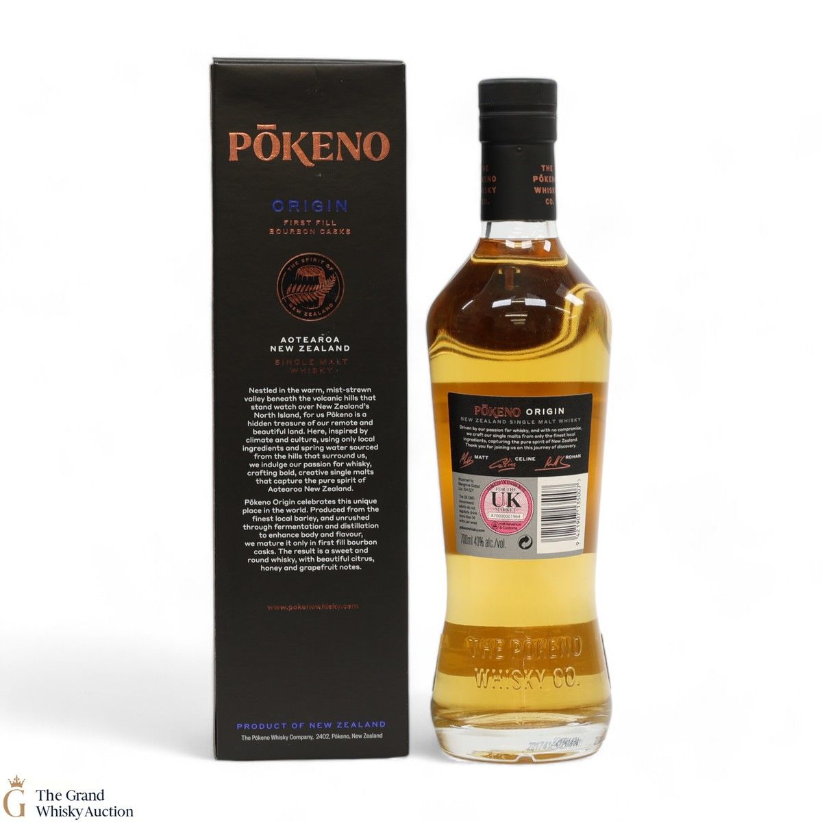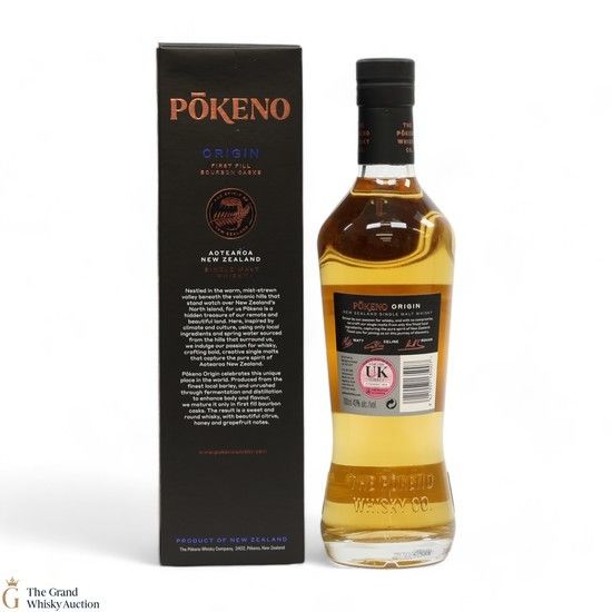 Origin comes from Pokeno in New Zealand's Waikato region. Made from locally-grown barley and matured entirely in first-fill bourbon barrels.