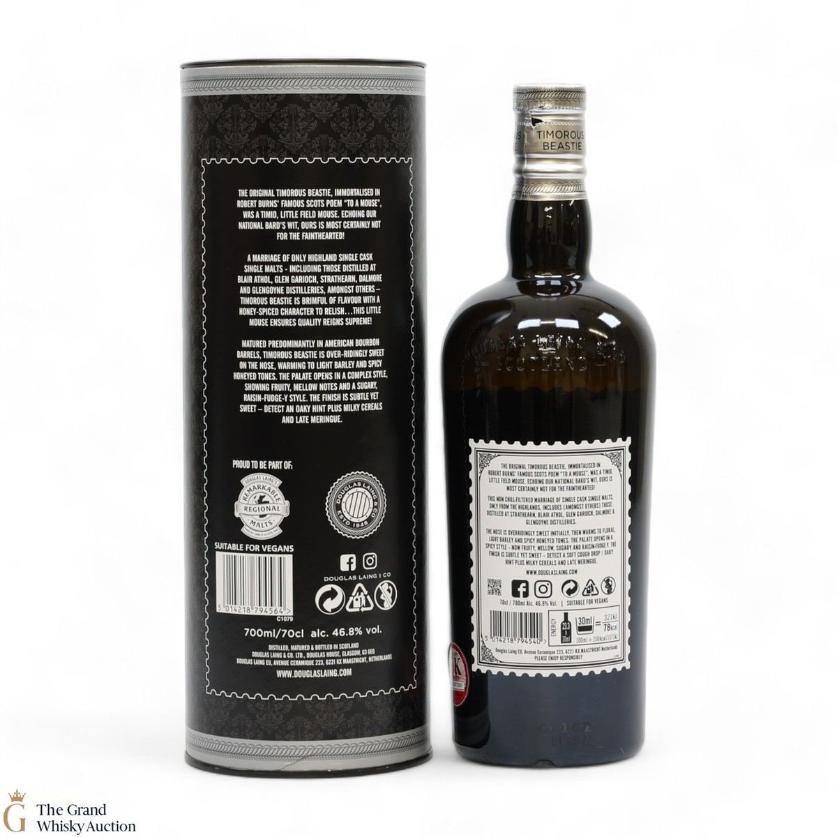 The Timorous Beastie Highland blended malt Scotch whisky was matured and bottled at 46.8% ABV. It has sweet-tasting notes including warm syrup over the sponge and ripe, juicy nectarines.