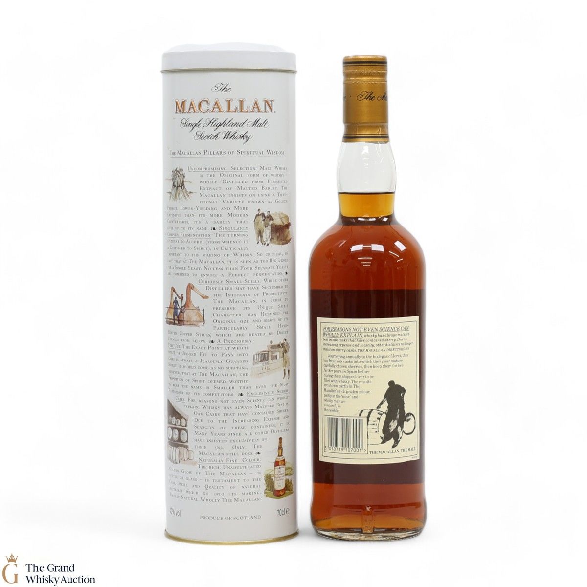 A 1990's bottling of 10 year old Macallan, matured in sherry wood with a presentation tin depicting Easter Elchies House.