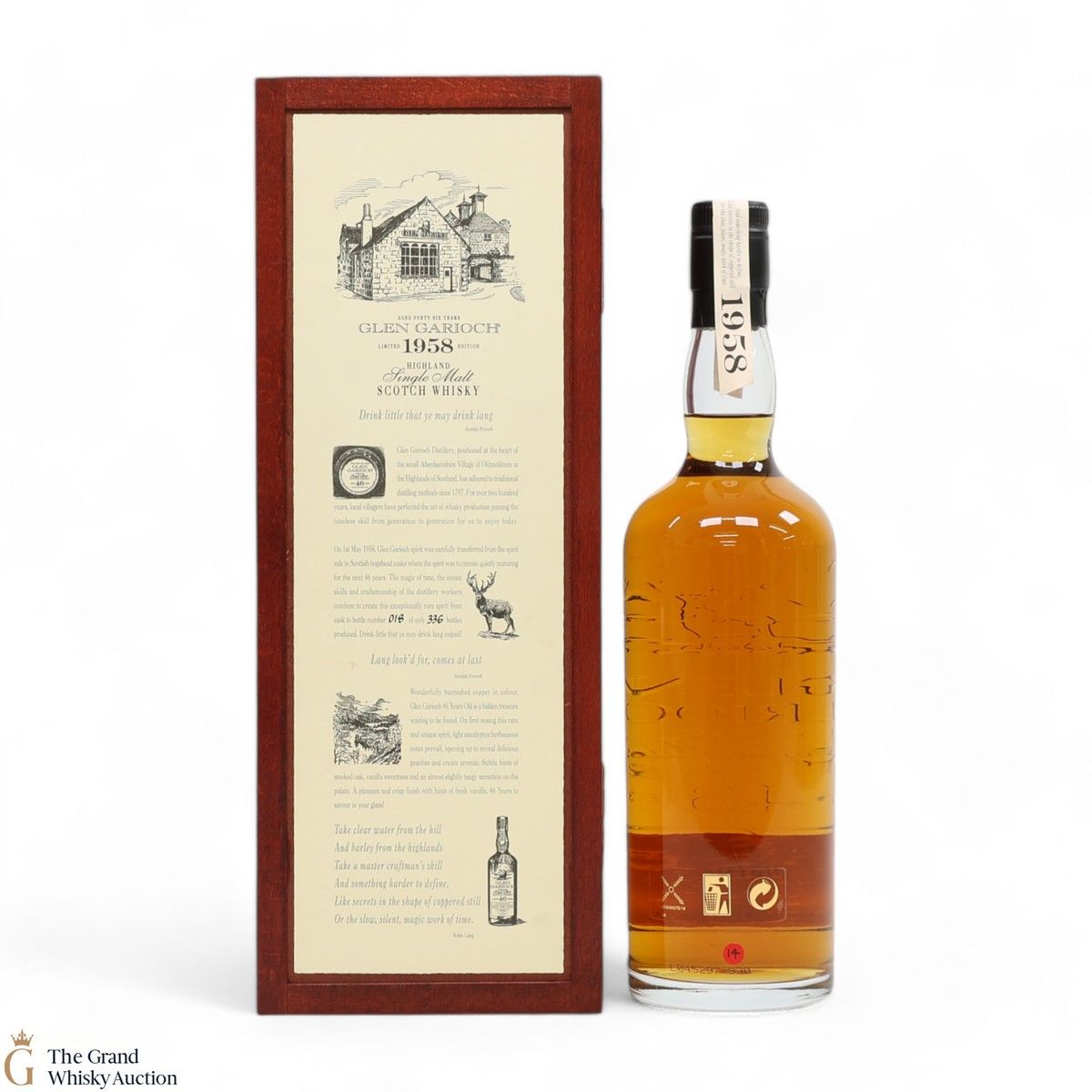 Distilled at the Glen Garioch Distillery, found just outside of Oldmeldrum on the east coast of Scotland, this single malt matured from 1958 to 2004. It was then bottled at 43% ABV, one of only 336 bottles produced.
