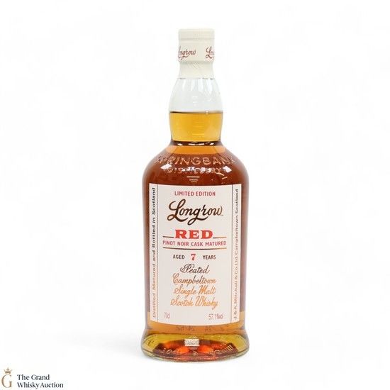 Springbank Longrow Red, is always bottled at cask strength, is released annually in small quantities and every year a different type of red wine cask is used to mature the whisky.