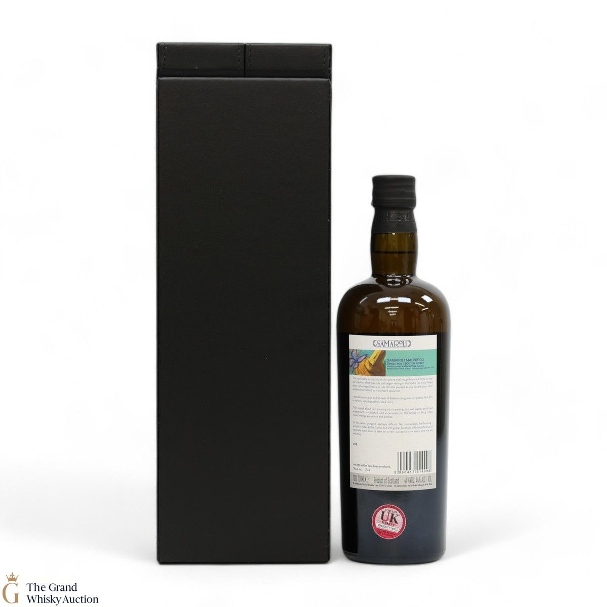 Due to the various ages of bottles and their seals, the condition of liquid is at the buyer's discretion and no claim can be lodged against failure/leakage in transit. Loss and breakage cover is available at 3% of the hammer price as standard. If the lot is not insured, no claim can be lodged against the courier or The Grand Whisky Auction for breakage or loss in transit.