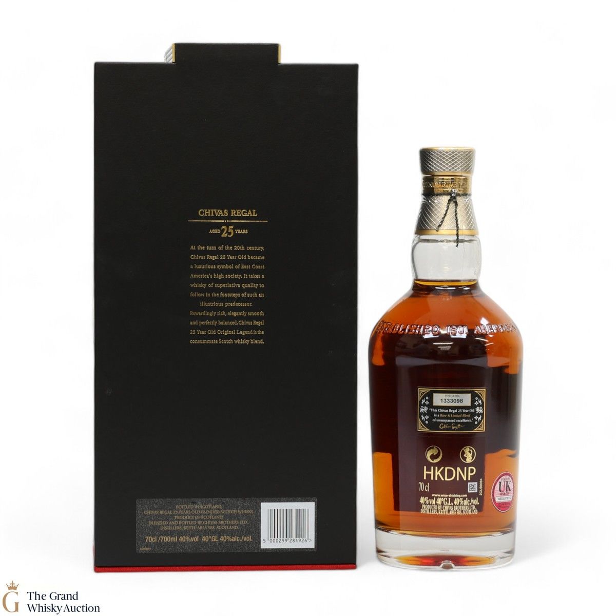 This Chivas Regal 25 year old is a delicious blend, with notes of peach and almond. It comes in a striking presentation box.