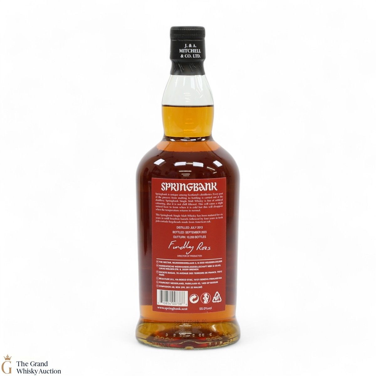 This Springbank Single Malt Whisky was distilled in July 2013 and has been matured for six years in refill bourbon barrels followed by four years in fresh palo cortado hogsheads made from American oak. It was then bottled in September 2023 at a strength of 55% ABV with an outturn of 10,200 bottles.