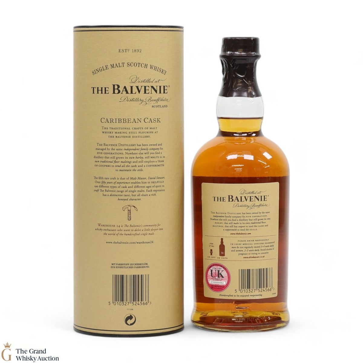 This lot is the famous Balvenie Caribbean Cask 14-year-old single malt whisky.