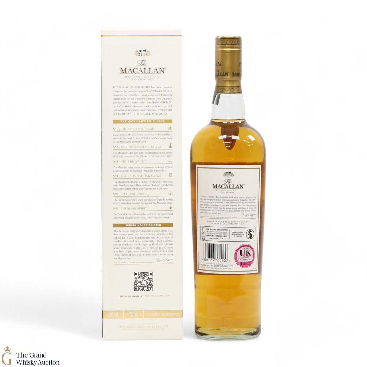 The Macallan 1824 Series celebrates natural colour. The most distinctive and defining characteristic of Macallan is the sherry-seasoned oak casks that are used to mature the whisky. This series shows commitment to 100% natural colour, drawn from wood. The colour of each expression becomes deeper as the range progresses.