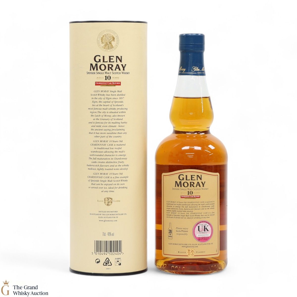 This Glen Moray single malt from Speyside has been matured in chardonnay casks. This is an older bottling of Glen Moray that has long been discontinued. It has a light gold colour and is gently spiced with fruity butterscotch notes.