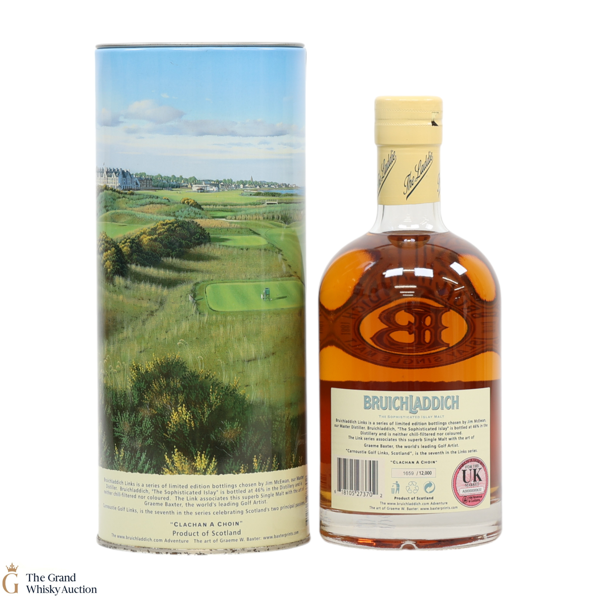 The Bruichladdich Links collection was created in partnership with Graeme Baxter, a famous world-leading Golf Course artist. It is a series of releases, each featuring a different golf course.