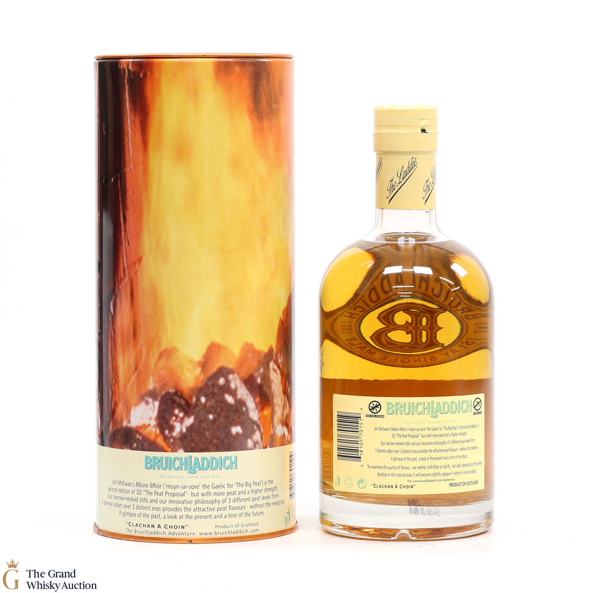 Moine Mhor is Gaelic for 'big peat' - This is a vatting of 3 different peat levels from 3 diverse cellars over 3 distinct eras, thus the name '3D': Heavily peated 2001 Port Charlotte, moderately peated 1998 whisky and 1989 lightly peated Bruichladdich. This bottling is the second edition of 3D "The Peat Proposal" but with more peat and higher strength.