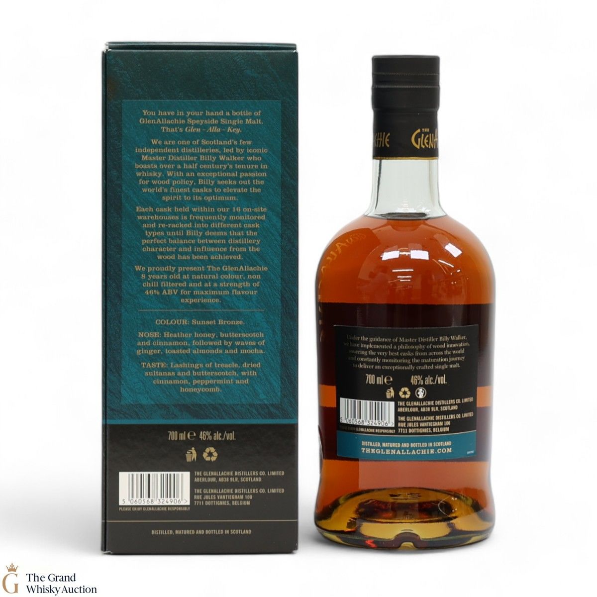 Released as part of their core range, The GlenAllachie 8-year-old was created from a combination of Pedro Ximénez and Oloroso sherry puncheons along with a small quantity of Virgin Oak casks and red wine barriques. The resulting bronze spirit delivers sherry-matured sophistication.