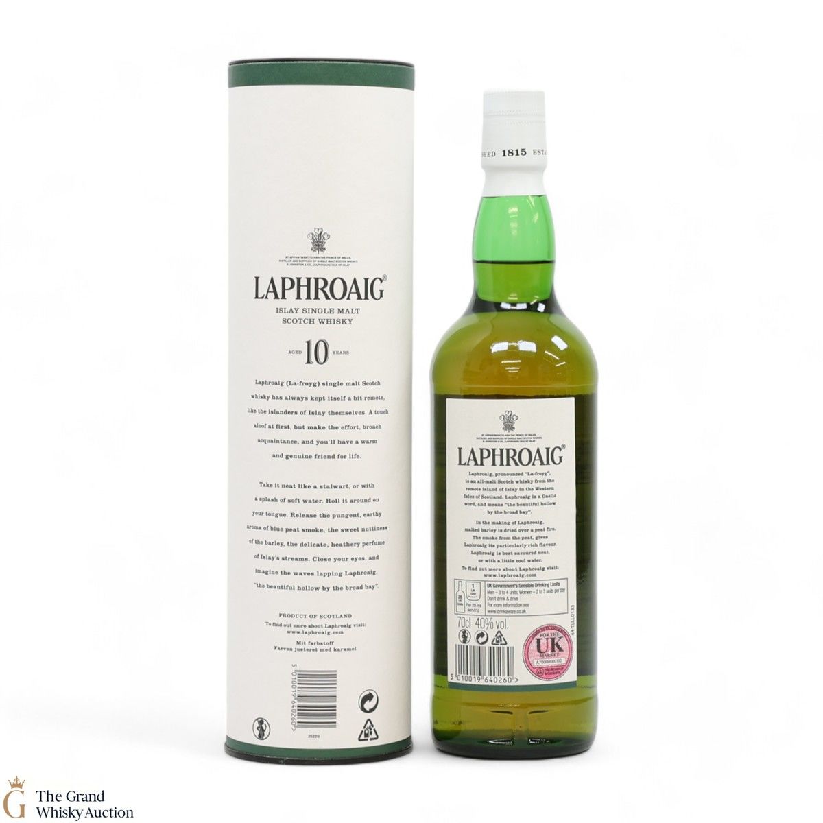 A 70cl of the medicinal 10 year old from Islay's bestselling distillery, Laphroaig. In making Laphroaig, malted barley is dried over a peat fire. The smoke from this peat, found only on Islay, gives Laphroaig its particularly rich flavour.