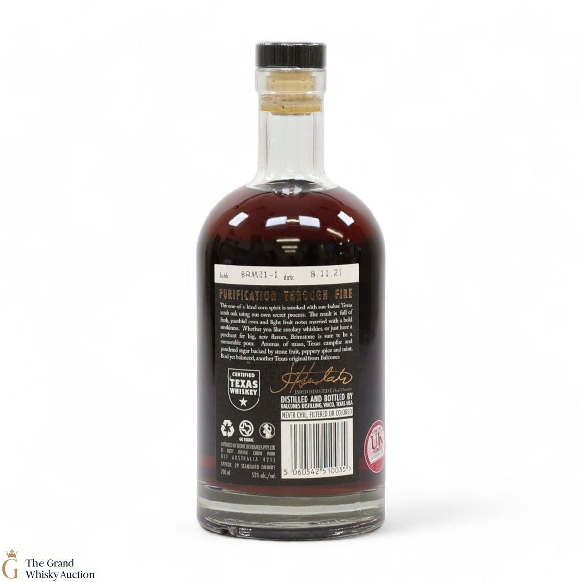 From American craft distiller Balcones comes this smoky corn whisky, fittingly named the Brimstone, by smoking the whisky itself rather than the grain. Made from roasted blue corn and bottled in 2021 at 53% ABV.