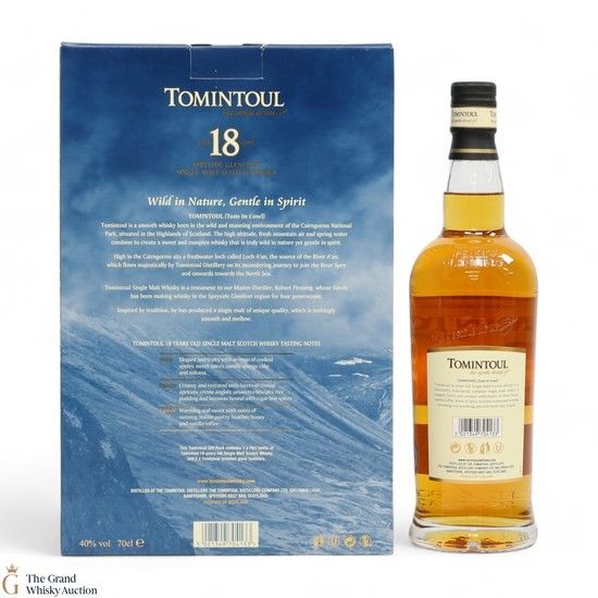 A 18-year-old single malt expression from Tomintoul. It has been matured in oak casks and crafted by the fourth generation distiller, Robert Fleming.
