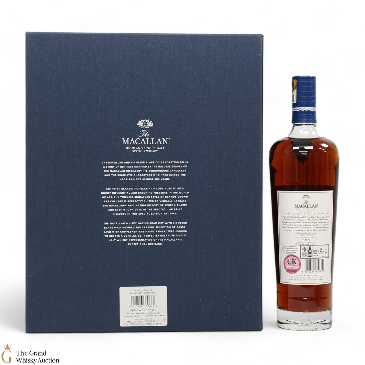 Part of The Anecdotes of Ages Collection, this is an extraordinary art and whisky collaboration with Sir Peter Blake. Being the third collaboration between the Macallan Distillery and Sir Peter Blake, this single malt was created to commemorate Sir Peter Blake's visit to The Macallan Estate. An Estate, a Community and a Distillery tells the story of some of the colourful characters from the distilleries' past and present and features a label designed by Sir Peter Blake.