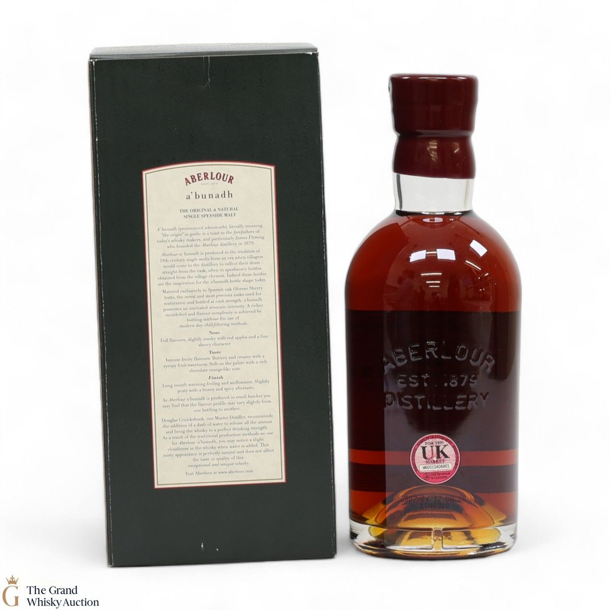 Bottled at cask strength after being matured in Sherry casks from Spain, this is batch number 20. This bottling line is based upon a tradition that dates back to the 19th century when people from the surrounding towns went to the distillery to collect their "dram".