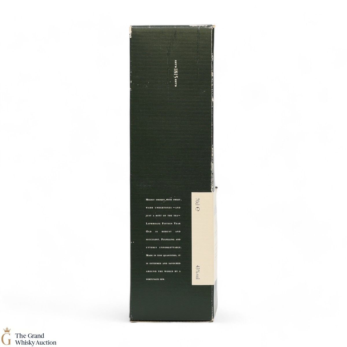 Due to the various ages of bottles and their seals, the condition of liquid is at the buyer's discretion and no claim can be lodged against failure/leakage in transit. Loss and breakage cover is available at 3% of the hammer price as standard. If the lot is not insured, no claim can be lodged against the courier or The Grand Whisky Auction for breakage or loss in transit.