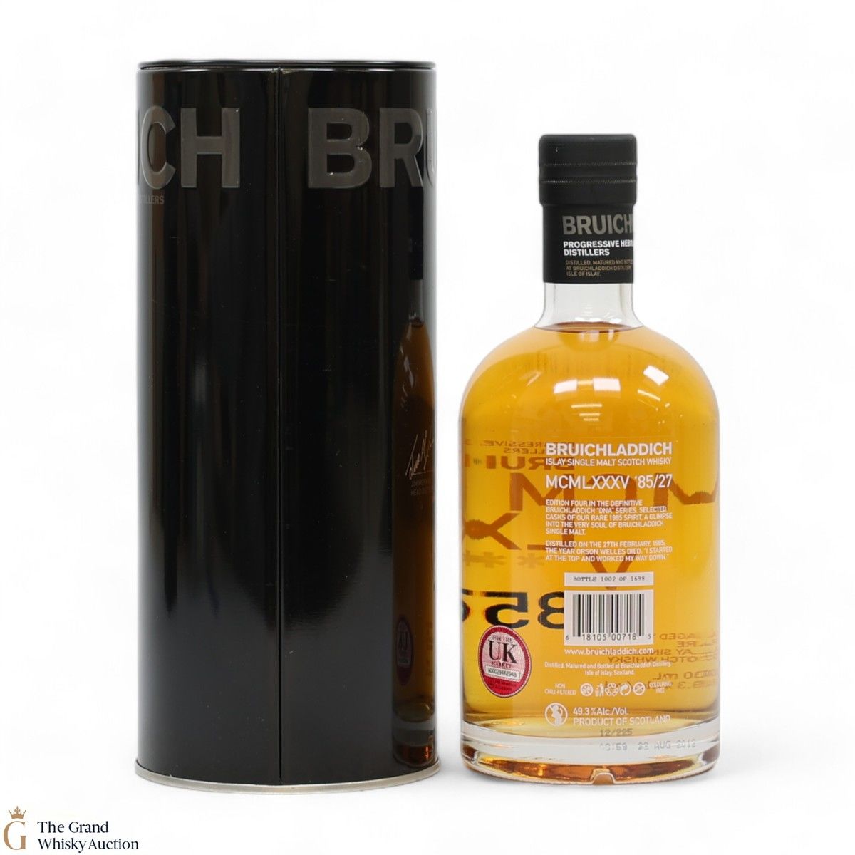 This bottle is edition 4 from the DNA series released by Bruichladdich. It was distilled on the 27th Feburary 1985 and left to then mature before being bottled 27 years later.