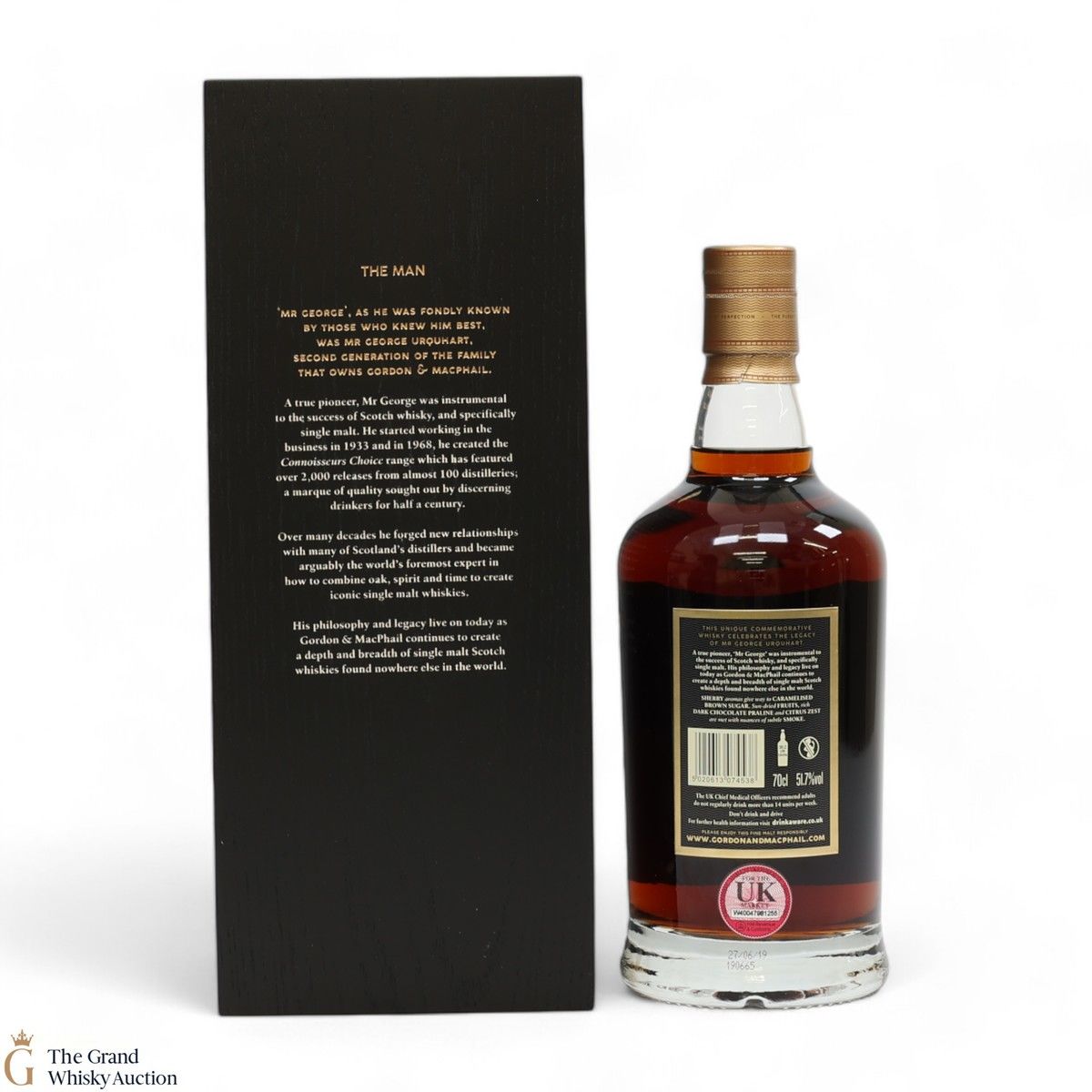 Distilled at the Glen Grant Distillery, this fantastic malt was originally laid down on the 13th of December 1956 by Mr George Urquhart where matured beautifully in first-fill sherry butt #4455. Bottled on the 27th of June 2019 by Gordon & MacPhail, this is one of just 235 bottles produced. Dedicated to the man who originally laid down this whisky, this is a fitting tribute to his lifelong love of whisky in what would have been his centenary year.