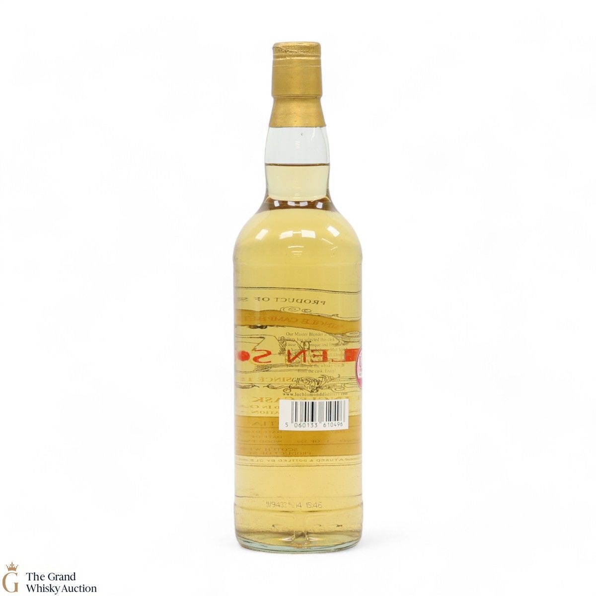 Due to the various ages of bottles and their seals, the condition of liquid is at the buyer's discretion and no claim can be lodged against failure/leakage in transit. Loss and breakage cover is available at 3% of the hammer price as standard. If the lot is not insured, no claim can be lodged against the courier or The Grand Whisky Auction for breakage or loss in transit.