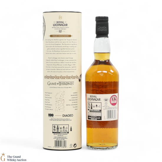 This is a limited-edition 12 year old single malt from Royal Lochnagar and it is part of Diagio's 2018 collaboration with HBO. Each single malt in the series relates to the land of houses of the Game of Thrones television series. The Royal Lochnagar bottle is decorated with a rampant black Stag, the sigil of House Baratheon that once flew on banners above the Stormlands and King’s Landing signifying absolute power.