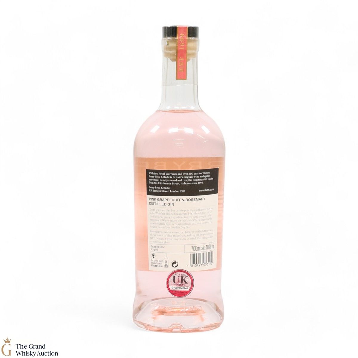 Berry Bros & Rudd’s Pink Grapefruit & Rosemary Gin combines the elegance of traditional gin with, contemporary flavours. This artisanal spirit features a harmonious blend of zesty pink grapefruit and aromatic rosemary, creating a refreshing and sophisticated taste experience.