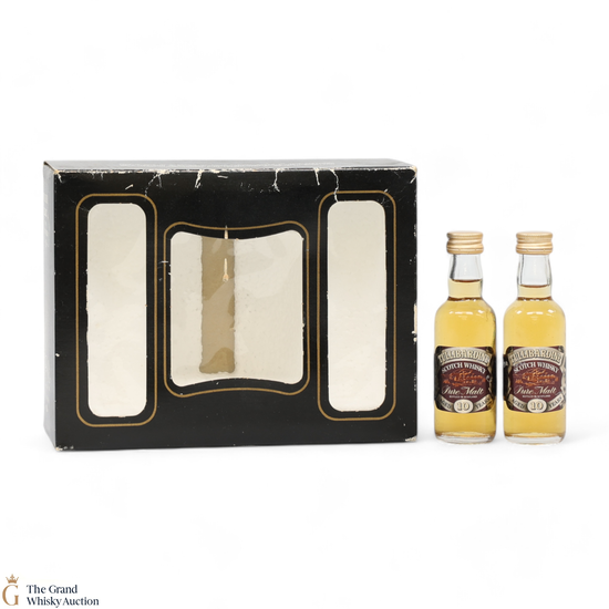 This lot contains 2x 5cl Tullibardine 10-year-old minis and a branded Tullibardine glass.