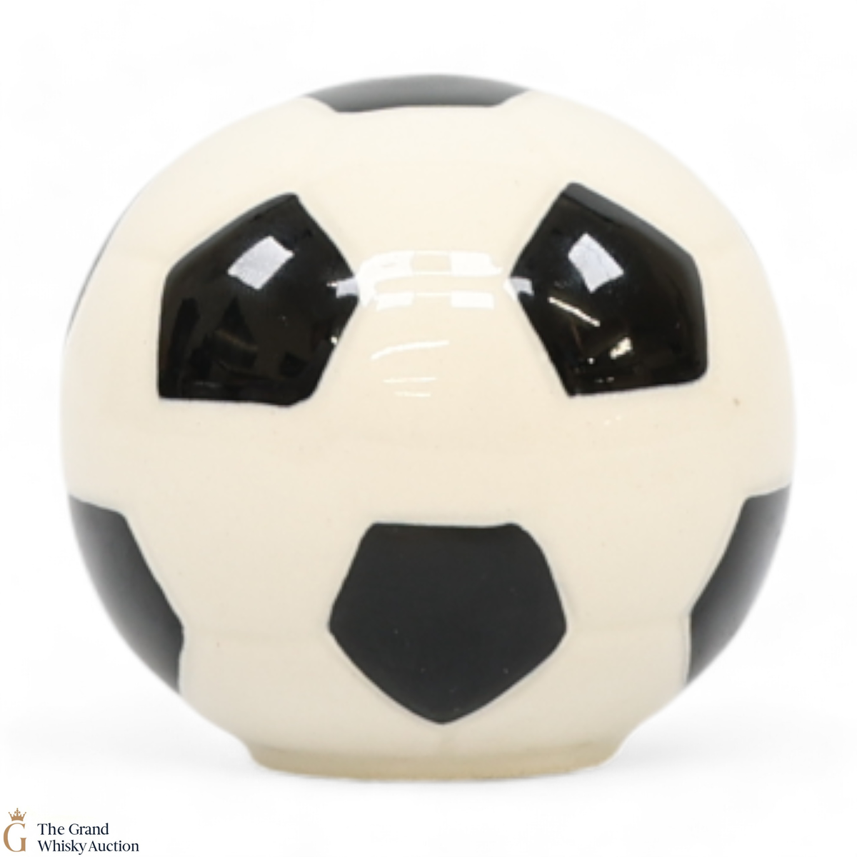 A miniature bottle of Beneagles Scotch Whisky, produced by Peter Thomson (Perth) Ltd. and presented in a ceramic football.