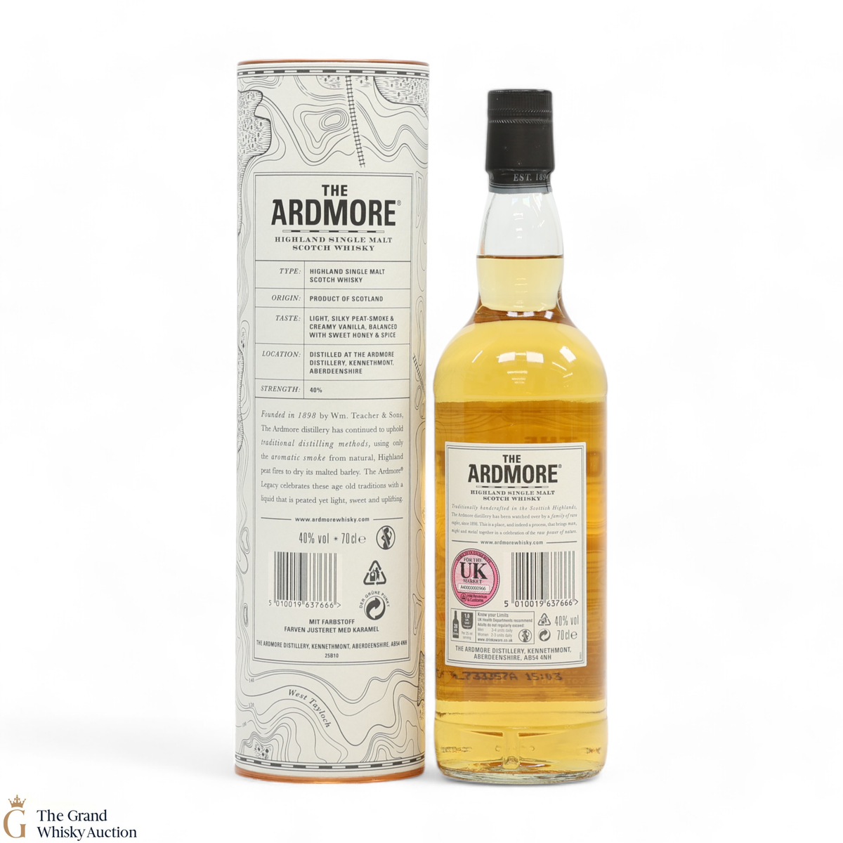 Ardmore Legacy was launched in 2014 to replace Ardmore Traditional. Ardmore Legacy is made with 80% peated and 20% unpeated malt.