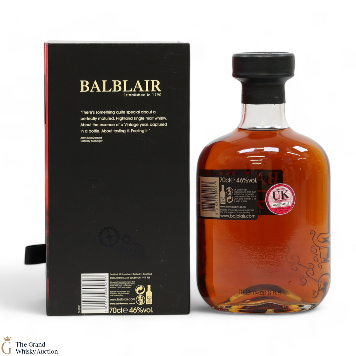 Due to the various ages of bottles and their seals, the condition of liquid is at the buyer's discretion and no claim can be lodged against failure/leakage in transit. Loss and breakage cover is available at 3% of the hammer price as standard. If the lot is not insured, no claim can be lodged against the courier or The Grand Whisky Auction for breakage or loss in transit.