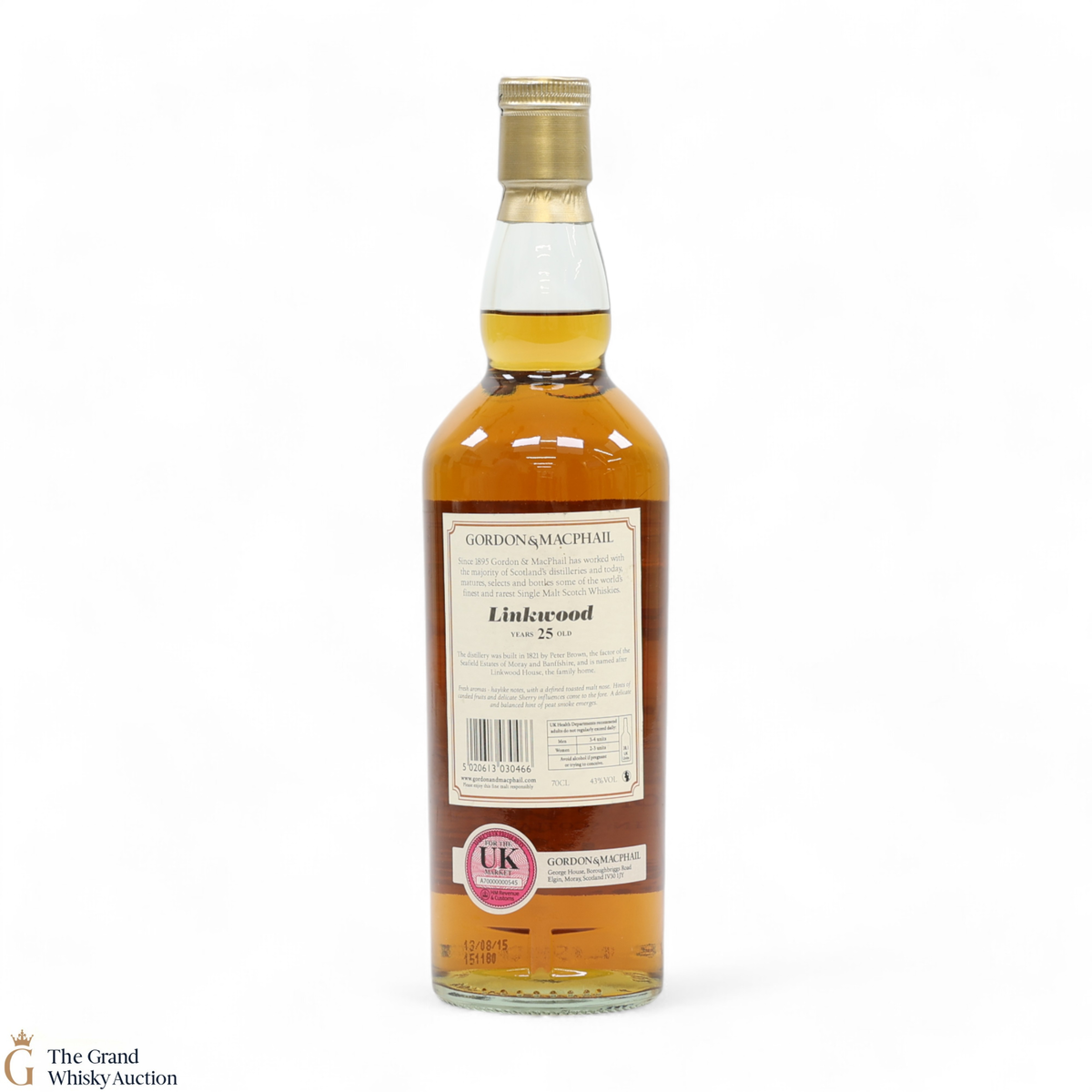 Distilled at Linkwood Distillery, this Speyside single malt was matured and bottled by Gordon & MacPhail for their Distillery Labels series. It was matured for 25 years in refilled sherry casks.