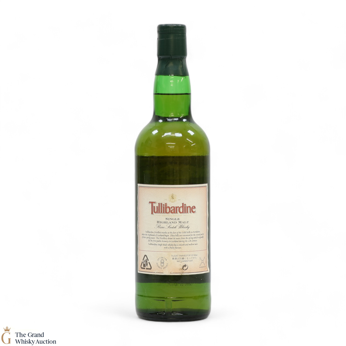 Due to the various ages of bottles and their seals, the condition of liquid is at the buyer's discretion and no claim can be lodged against failure/leakage in transit. Loss and breakage cover is available at 3% of the hammer price as standard. If the lot is not insured, no claim can be lodged against the courier or The Grand Whisky Auction for breakage or loss in transit.
