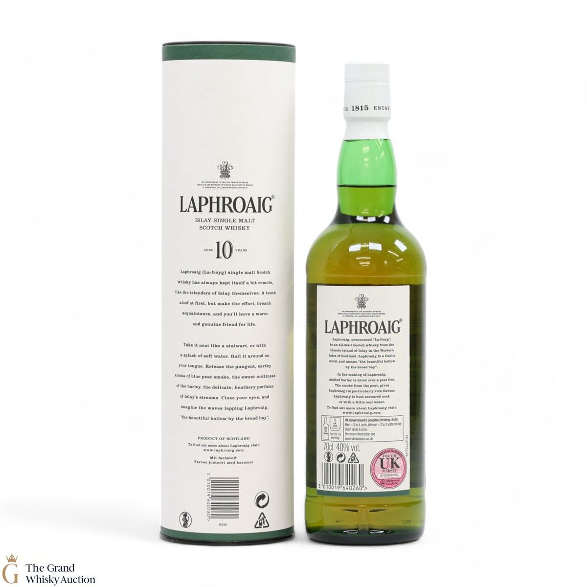 A 70cl of the medicinal 10 year old from Islay's bestselling distillery, Laphroaig. In making Laphroaig, malted barley is dried over a peat fire. The smoke from this peat, found only on Islay, gives Laphroaig its particularly rich flavour.