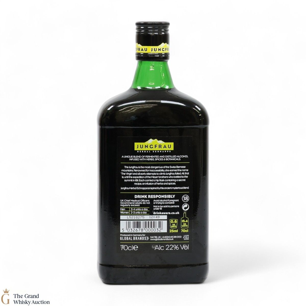 Jungfrau Herbal Schnapps is a German spirit renowned for its unique blend of alpine herbs, spices and botanicals. Crafted with pure mountain water, this schnapps delivers a crisp, aromatic flavour with a smooth finish.