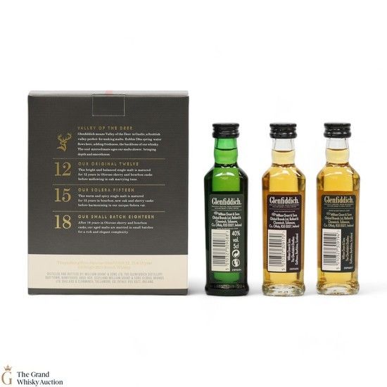 This lot includes 3 x 5cl bottlings of Glenfiddich in a presentation tube: