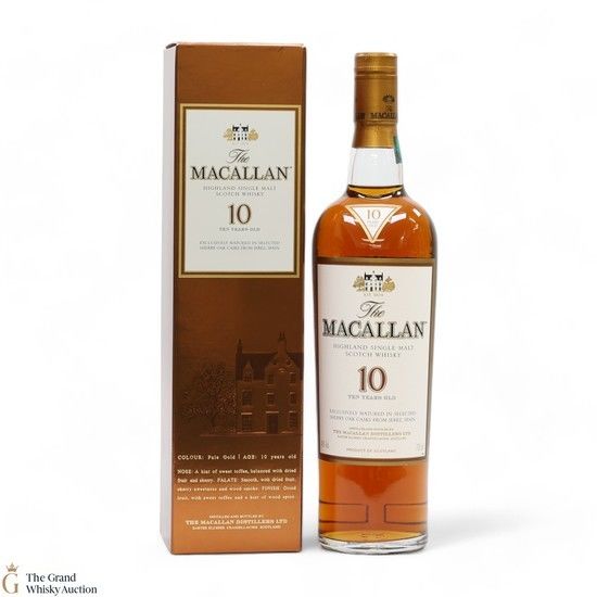 Distilled at the world-renowned Macallan Distillery in Speyside, this single malt was matured exclusively in sherry oak casks from Jerez, Spain. It was aged for a total of 10 years prior to bottling at a strength of 40% ABV.