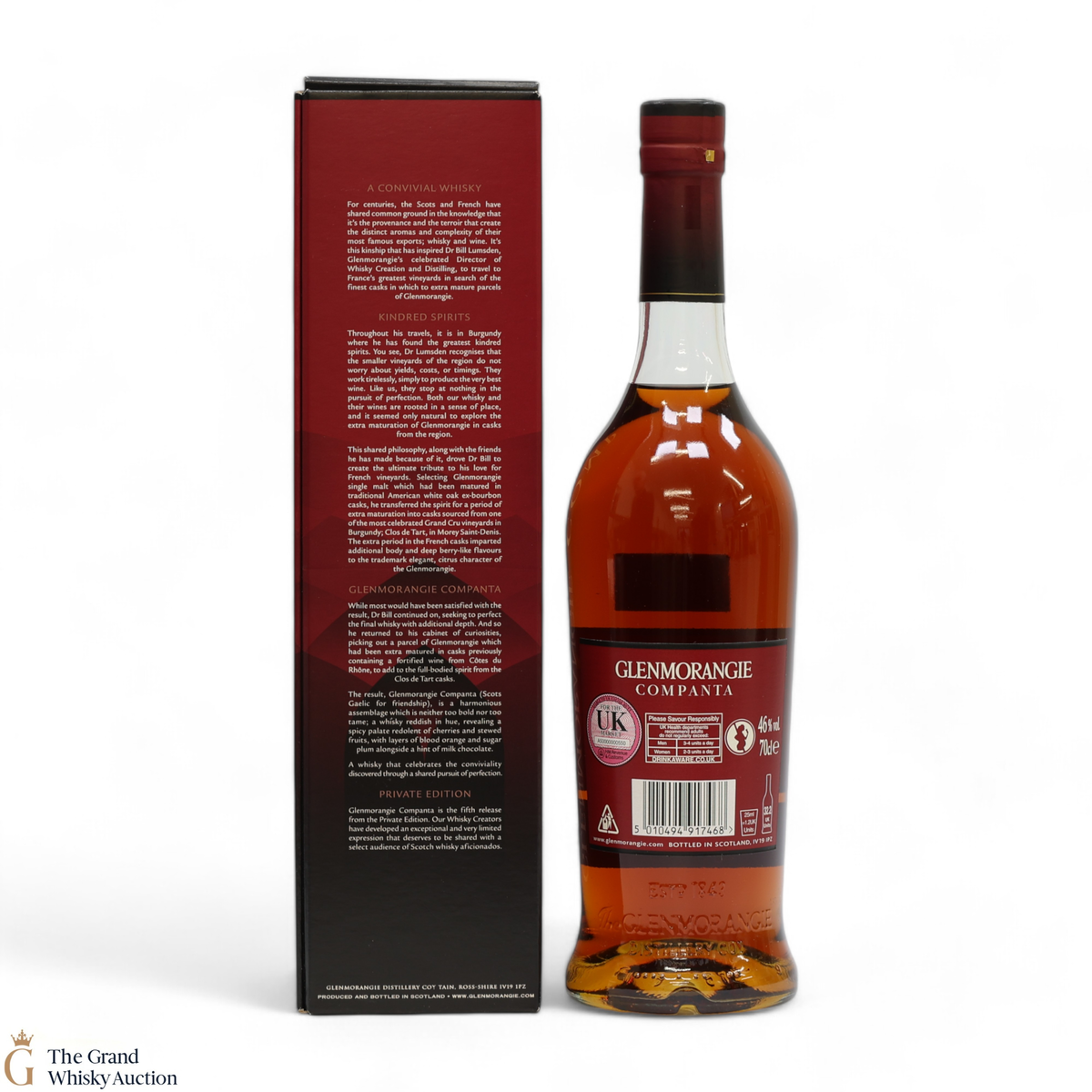 After first maturing in American white oak ex-bourbon barrels, the Companta was matured in 60% Burgundy wine casks from Clos de Tart and 40% Rhône Valley casks that previously held Rasteau, sourced by Glenmorangie's Director of Distilling, Dr. Bill Lumsden.