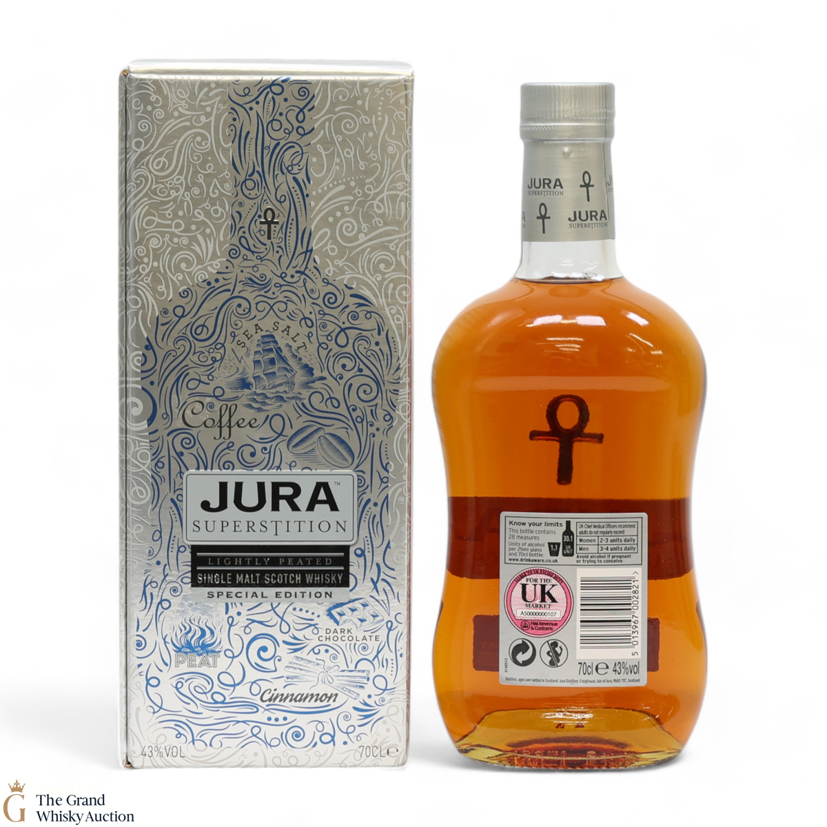 A lightly peated single malt made up of different ages. It is named after the fact that Islanders were very superstitious in the past, this is a nod to them, and to the Island of Jura which is still dotted with ancient stones and markings. When you raise a glass of this whisky, you're raising a glass to the ancient ways of the Island.