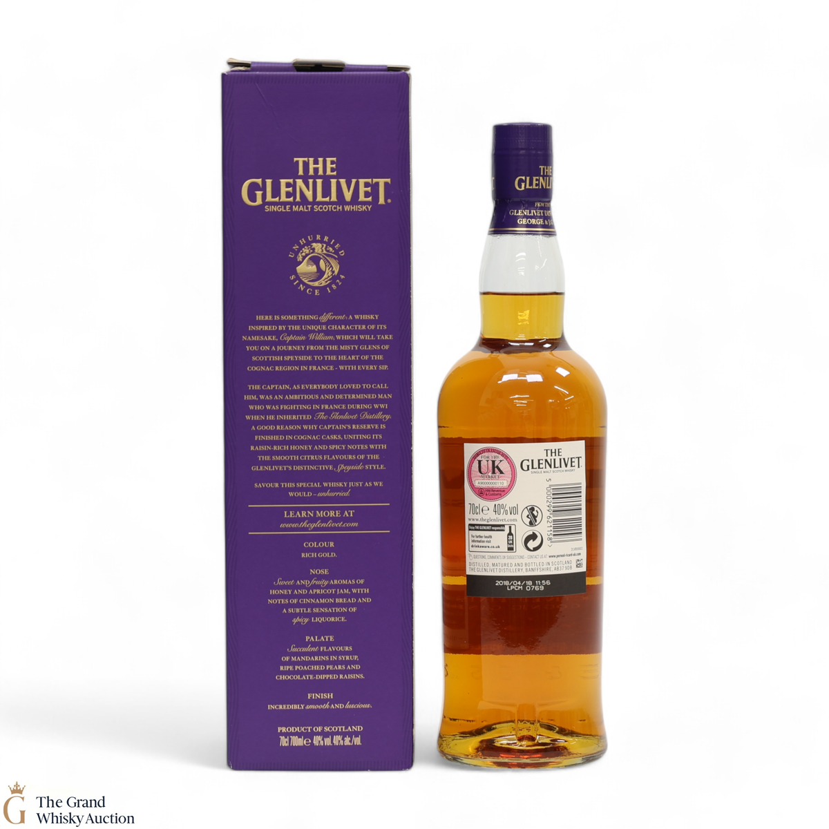 Due to the various ages of bottles and their seals, the condition of liquid is at the buyer's discretion and no claim can be lodged against failure/leakage in transit. Loss and breakage cover is available at 3% of the hammer price as standard. If the lot is not insured, no claim can be lodged against the courier or The Grand Whisky Auction for breakage or loss in transit.
