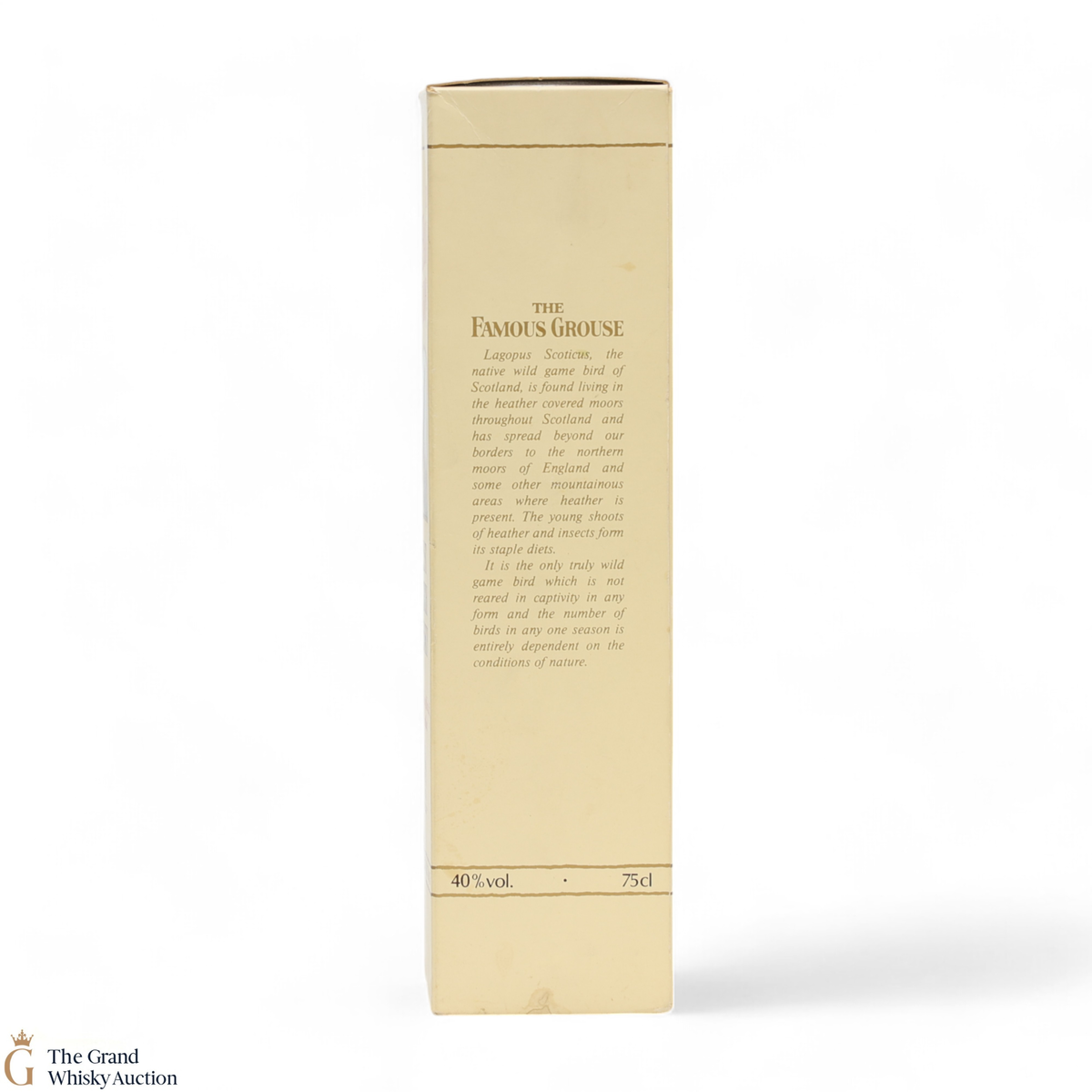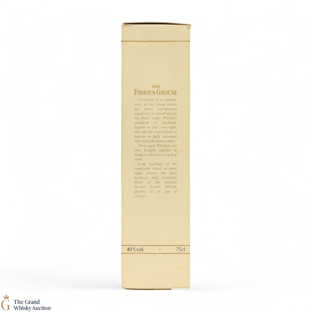 Famous Grouse blended scotch whisky was first produced by Matthew Gloag & Son Ltd in 1896, and is currently produced and owned by The Edrington Group.