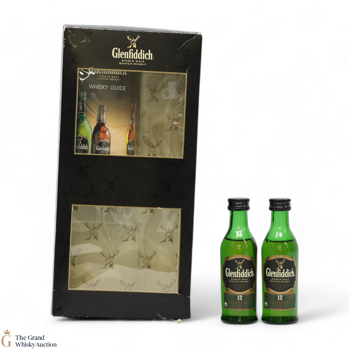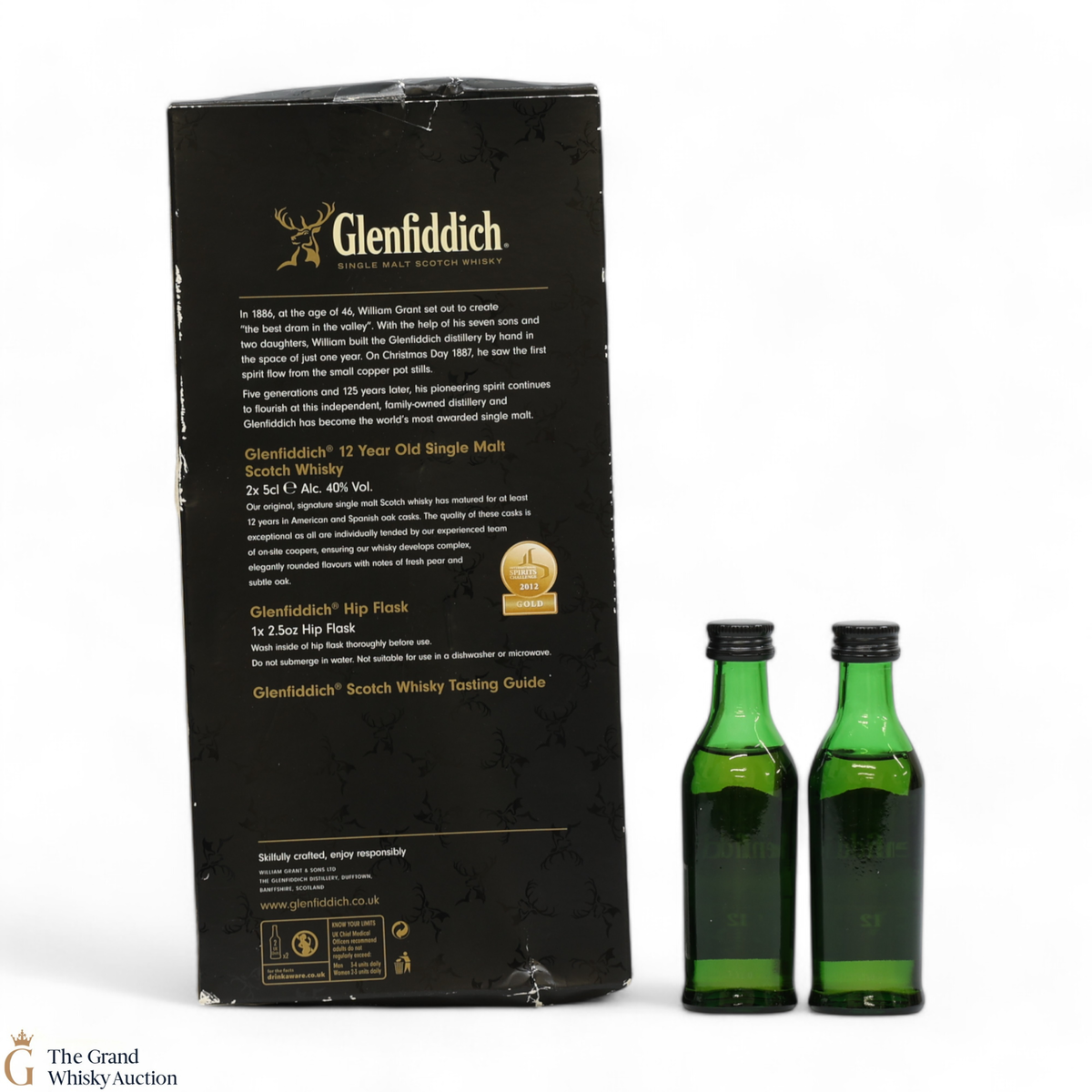 Within this box are x 2 Glenfiddich minis with a hipflask and whisky guide.