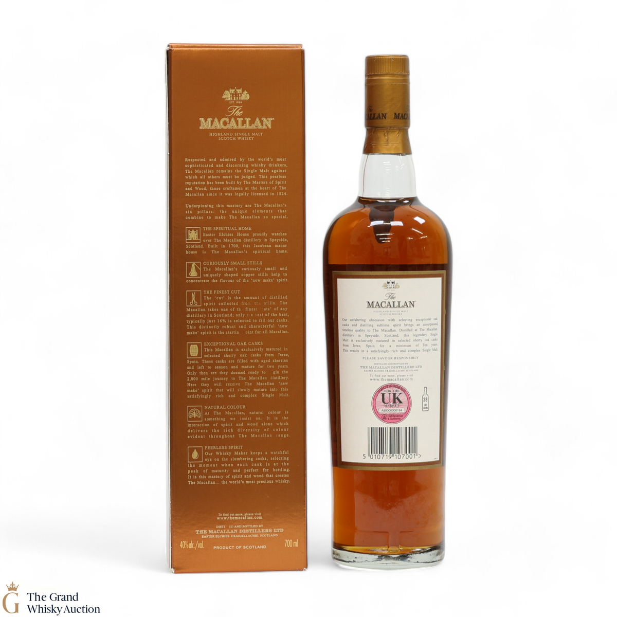 Distilled at the world-renowned Macallan Distillery in Speyside, this single malt was matured exclusively in sherry oak casks from Jerez, Spain. It was aged for a total of 10 years prior to bottling at a strength of 40% ABV.