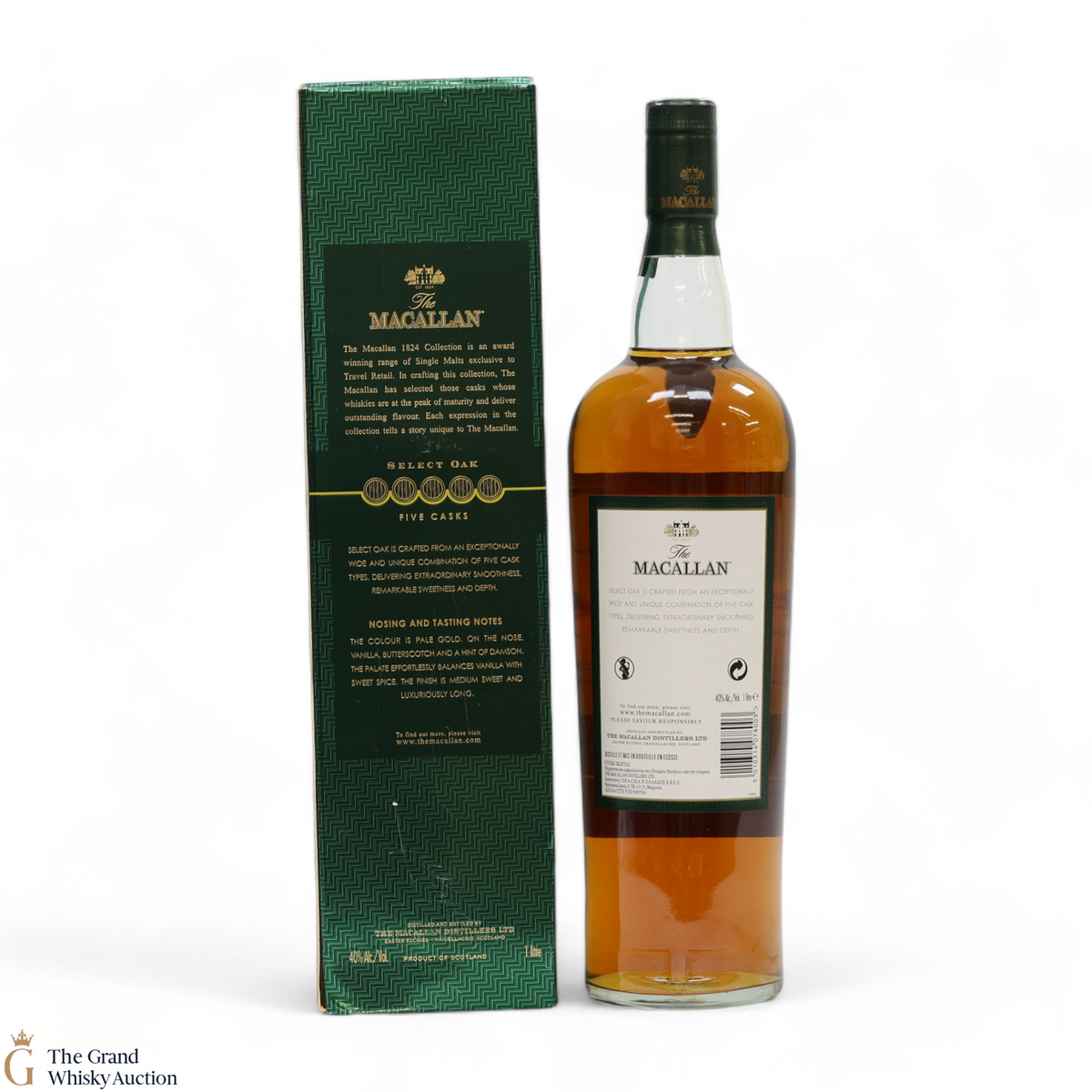 The Macallan Select Oak is crafted from a broad and unique selection of five casks which deliver a great smoothness, sweetness and depth. It is a lighter style of Macallan with sweet notes of butterscotch and vanilla.