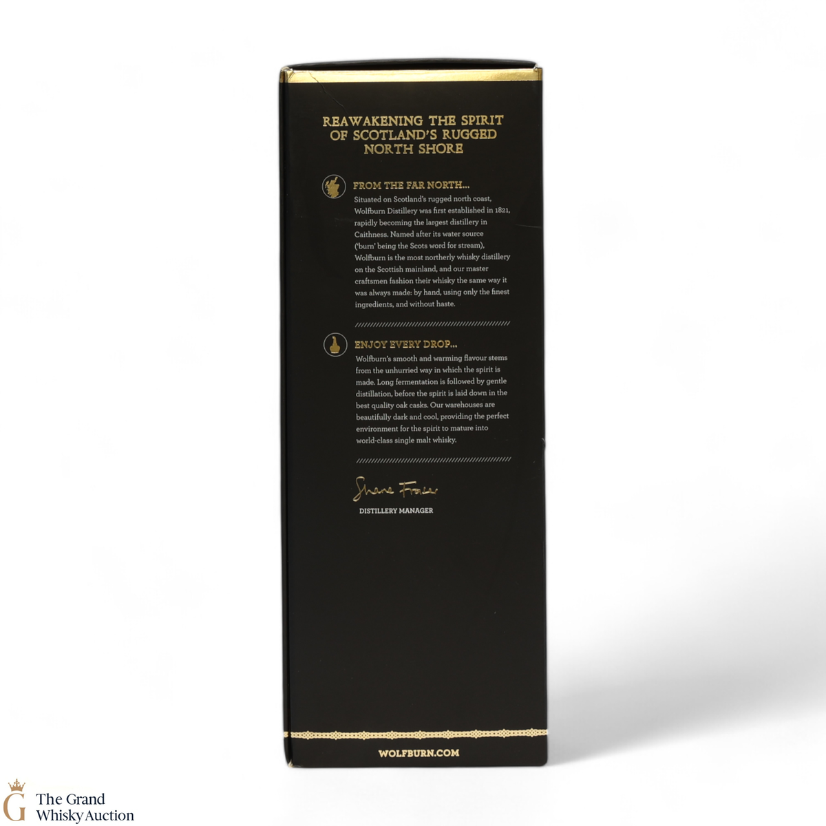 The most northerly whisky distillery on the Scottish mainland is situated in Thurso in the county of Caithness and Scotland’s Highlands whisky region. Wolfburn named after the watercourse that supplies the distillery was originally owned and operated by William Smith in 1821 before operation ceased in 1837. Laying dormant until 2012 when a private consortium called Aurora Brewing formed to rebuild Wolfburn 350 meters from the original distillery ruins. Whisky production resumed in 2013 after 157 years.