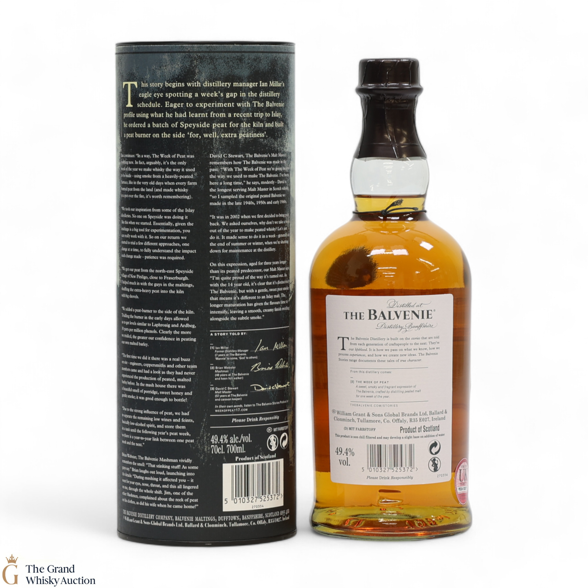 Distillery manager Ian Millar installed a peat burner at Balvenie and since 2002, the distillery has dedicated one week each year to run heavily peated barley through the whisky-making process creating a distinctly different Balvenie. The result is a classic Balvenie expression balancing sweet peat smoke with notes of citrus and honey.